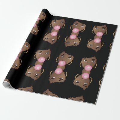 Ad: Black Afro Popping Pink BubbleGum Wrapping Paper