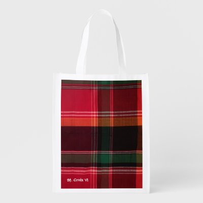 Ad: Red and Green Madras and Plaid Grocery Bag