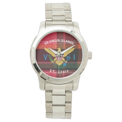 Red Madras St. Croix Virgin Islands Flag USVI Watch - Enjoy the Traditional Madras and Plaid Pattern with the US Virgin Islands Flag. Personalize it for other islands. Beautiful St. Croix is located in the Virgin Islands and the Madras material has been a part of the culture. It is worn by Quadrille Dancers with their traditional hats and clothes while they dance to Quelbe music in the Caribbean islands. We hope that you will enjoy a part of island culture and showcasing the US Virgin Islands Flag. myEverything